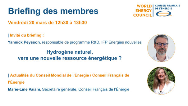 Le Conseil Français de l’Énergie vous donne rendez-vous pour le prochain Briefing des membres en visioconférence vendredi 20 mars 2026 de 12h30 à 13h30 avec :