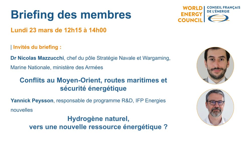[ Nouvelle date ] Le Conseil Français de l’Énergie vous donne rendez-vous pour le prochain Briefing des membres en visioconférence lundi 23 mars 2026 de 12h15 à 14h00 avec :